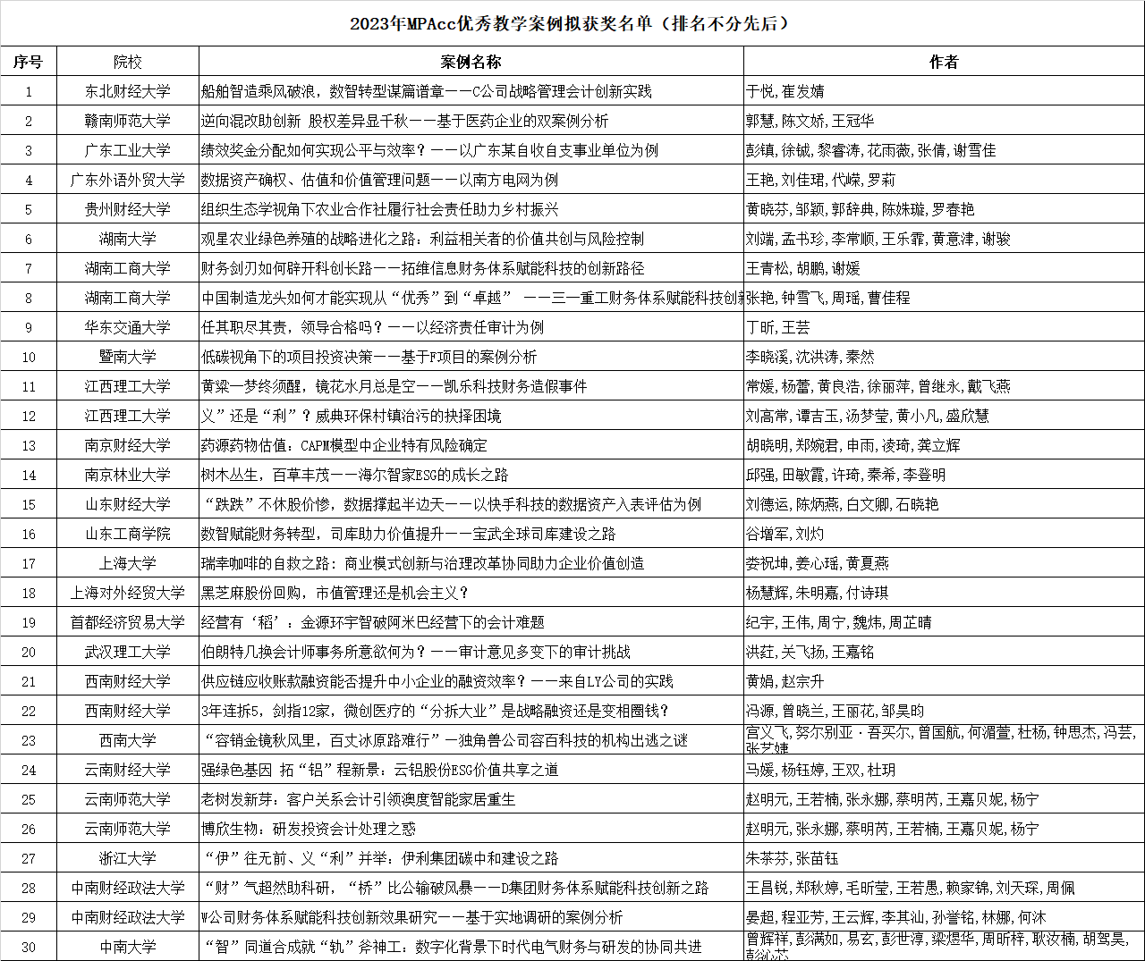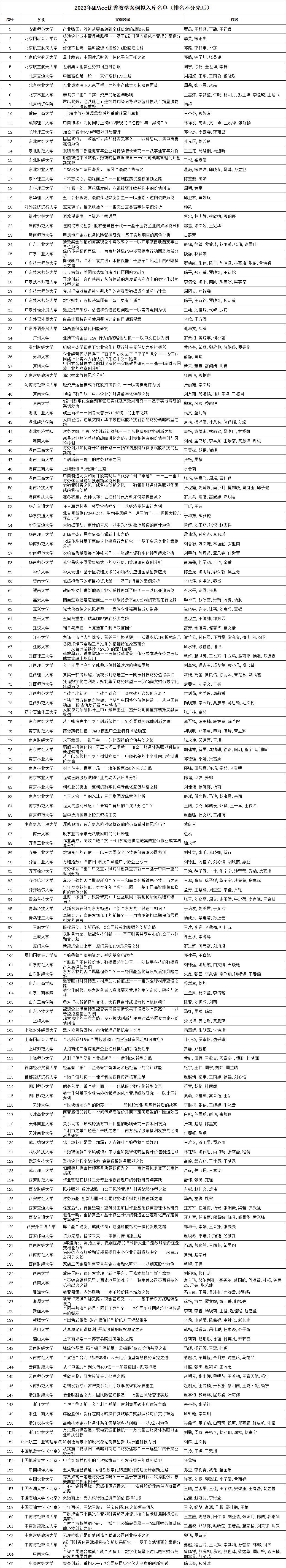 2023年会计硕士专业学位优秀教学案例评选结果