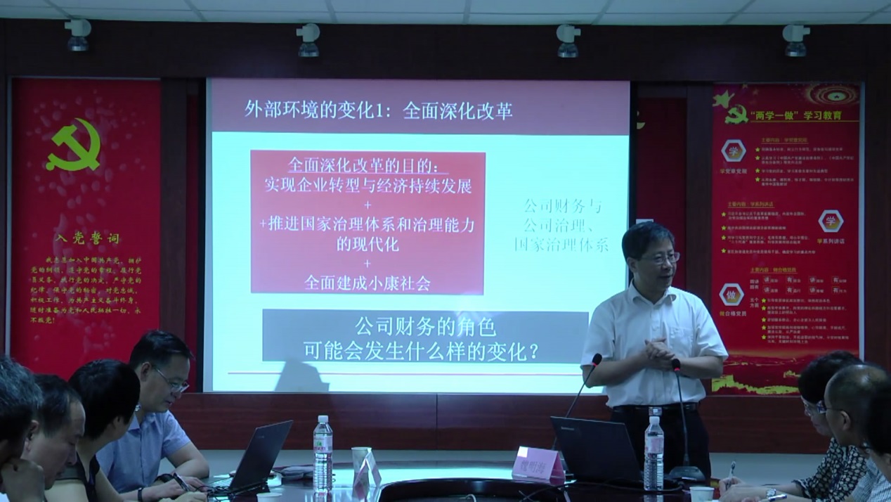 魏明海教授报告的题目是“思考公司财务战略问题的场景与逻辑”。在报告中,魏明海教授首先介绍了以全面深化改革、信息技术为代表的外部环境变化,并以此为切入点,引出公司财务角色变化正在加快。魏明海教授从经营管理、公司治理、资本市场、公共管理等四个方面对财务功能的拓展进行了剖析。