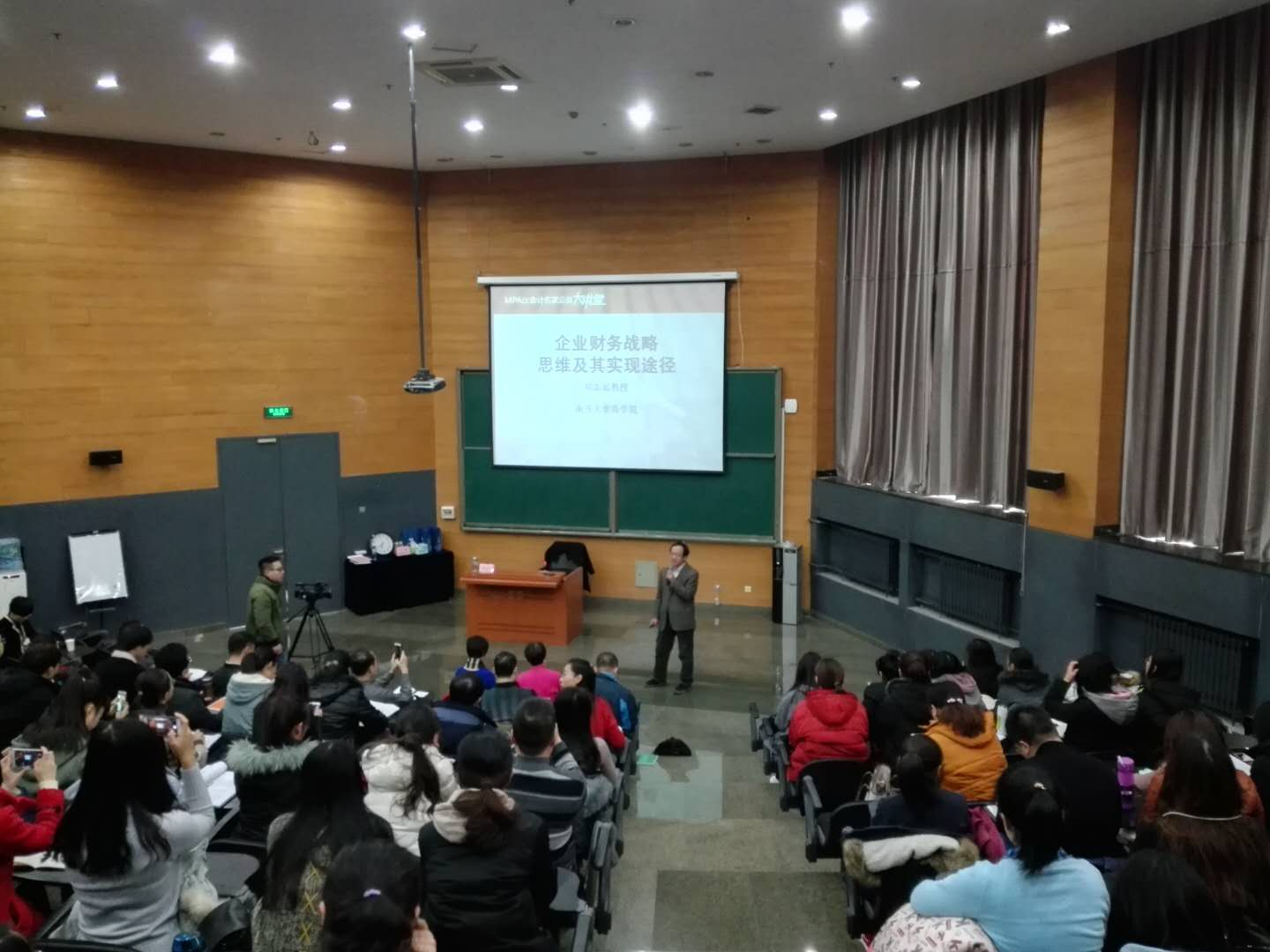 2017年12月4日上午,财政部会计名家培养工程入选者、全国会计专业学位研究生教育指导委员会委员、南开大学商学院博士生导师刘志远教授在天津财经大学M座2楼钻石报告厅举办了主题为“企业财务战略思维及其实现途径”的讲座,2017级MPAcc的学员与天津市会计领军三、四期的学员参加了本次讲座。