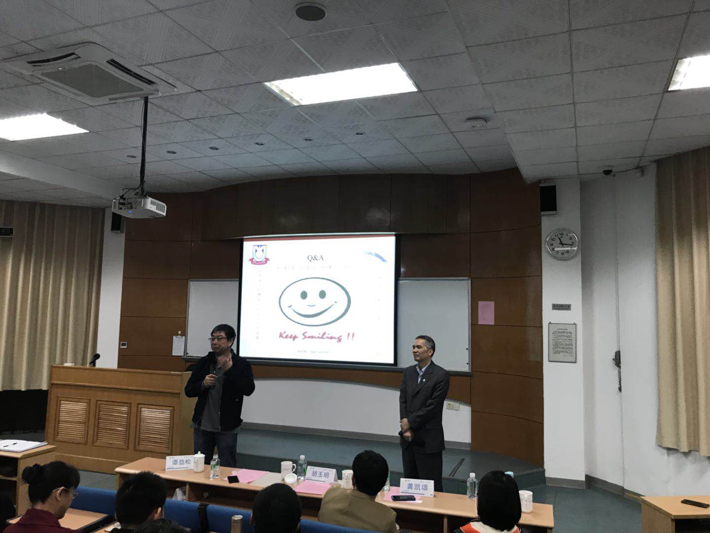 在现场互动环节,胡玉明教授答复了来自同学和业界同仁提出的前沿问题,其形象生动的解答引起现场一阵阵热烈的掌声。师生之间的充分交流引起了思维的碰撞,进一步丰富了本场讲座的内容。
