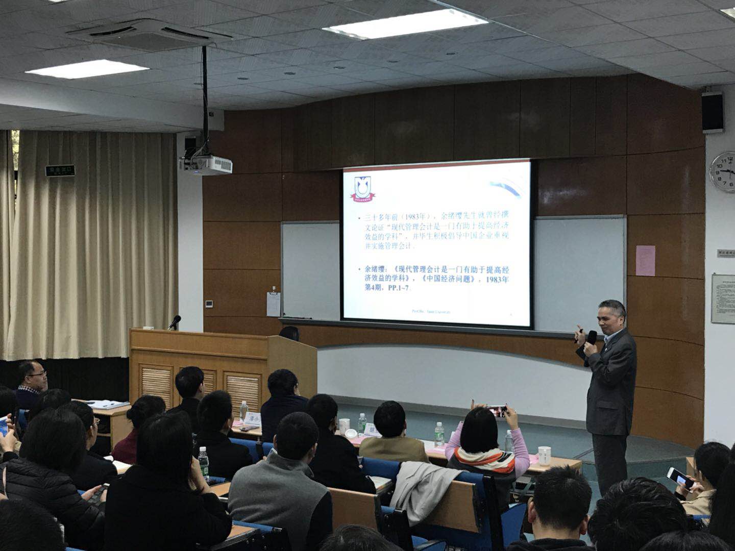 演讲结束后,管理学院谭劲松教授和蔡祥副教授分别进行了总结,并再次感谢胡玉明教授的到来。最后,全体师生以热烈的掌声感谢胡玉明教授悉心准备的“干货满满”且妙趣横生的演讲。