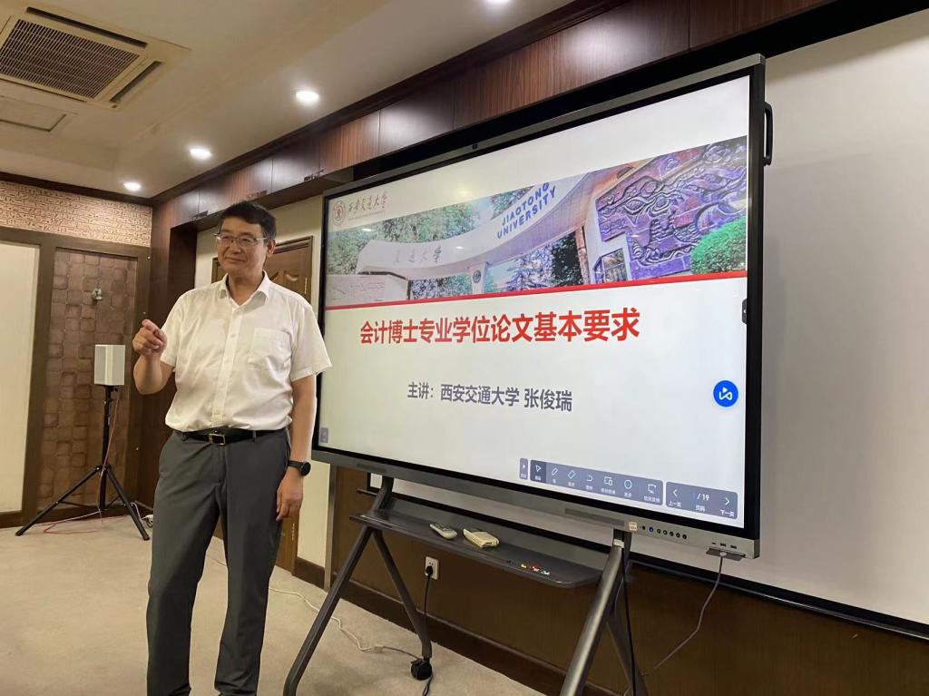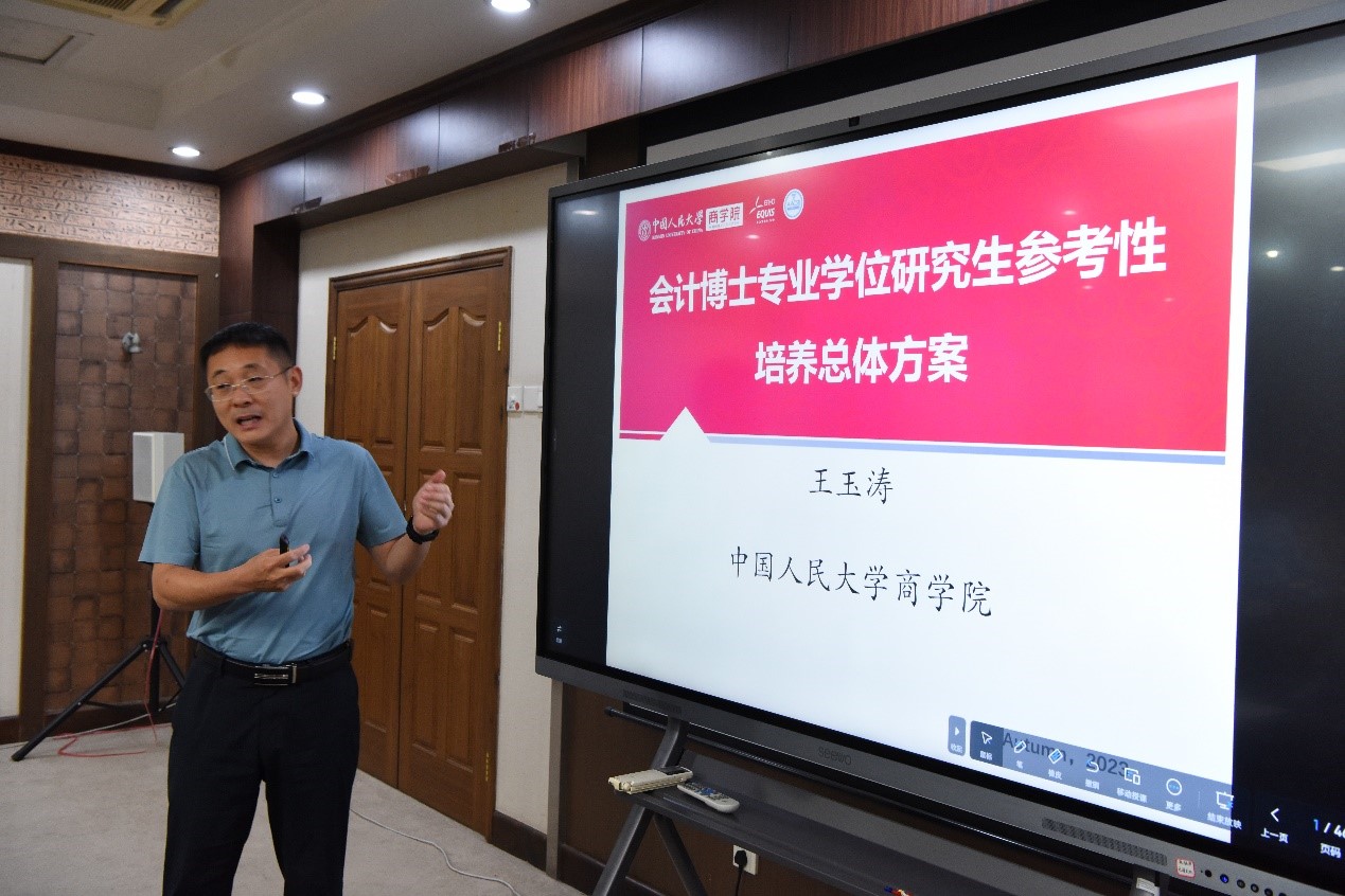 本次会议特邀中国人民大学商学院王玉涛教授和会计教指委顾问、西安交通大学管理学院张俊瑞教授分别对会计博士专业学位研究生培养方案和会计博士专业学位论文基本要求进行报告。