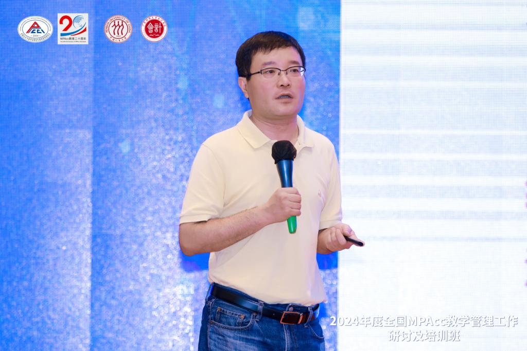 在上午的培训中,会计教指委秘书长、中国人民大学支晓强教授以“心怀‘国之大者’,勇于创新,开拓进取,合作共赢”为题,全面介绍了会计教指委2023年工作开展情况及2024年工作要点。同时,他强调,今年是MPAcc教育发展的第二十年,经过二十年的发展,会计硕士专业学位研究生教育已成为我国专业学位教育体系的重要组成部分。在多年的持续改革中,形成了以质量保障为核心,以实务导向为重点,以沟通交流为桥梁的MPAcc教育建设体系,有力推动了我国会计专业学位研究生教育事业持续健康发展。