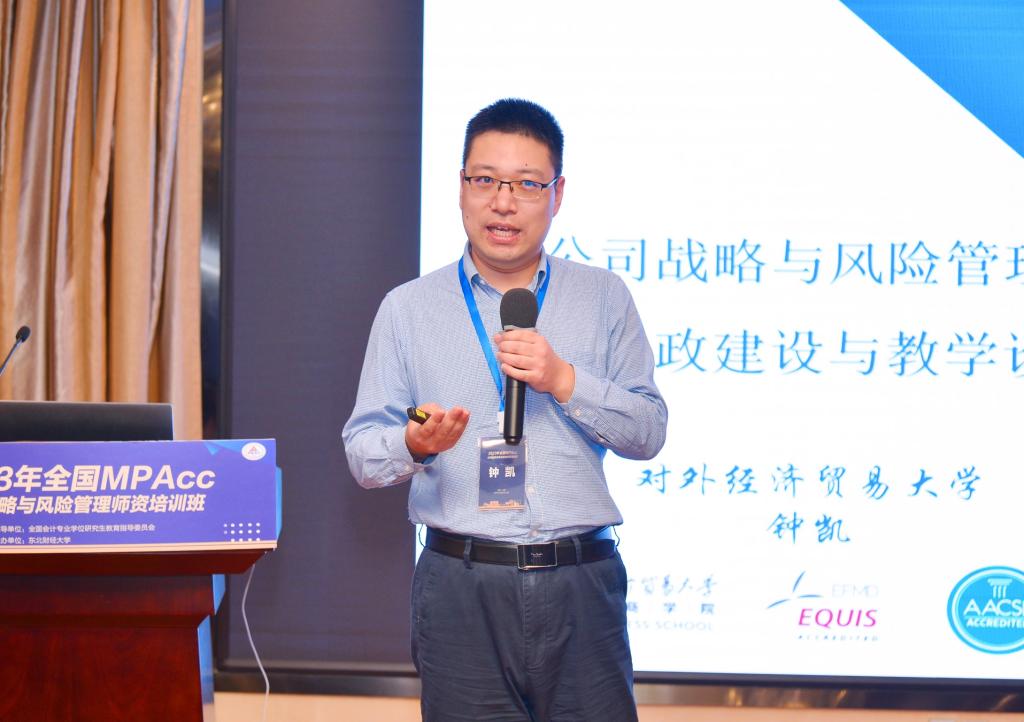 在下午的培训中,对外经济贸易大学国际商学院吕文栋教授带来题为“风险管理的现状与课程的总体架构”的主题报告,他结合自身的研究、教学以及调研经验,系统介绍了风险管理的理论渊源以及现实困境等内容。对外经济贸易大学国际商学院钟凯副教授以“课程思政建设与教学设计”为主题,介绍了课程思政建设的特点、要素与体系,并以战略管理流程为例,分享了相关课程教学内容与教学案例的设计经验。中央财经大学中国互联网经济研究院赵杨副研究员带来题为“基于弹性视角的战略风险管理”的主题报告,指出传统战略风险管理的困境,重点阐述基于弹性视角的战略风险管理,提出在战略风险管理流程中寻求拓展空间的路径及微观机制。东北财经大学管理科学与工程学院田丹教授带来题为“案例教学设计”的主题报告,她结合一线教学的丰富经验,从教材结构与配套案例、案例类型、课堂组织、案例来源、案例使用五个方面分享自身的教学经验、教学方法和教学案例。