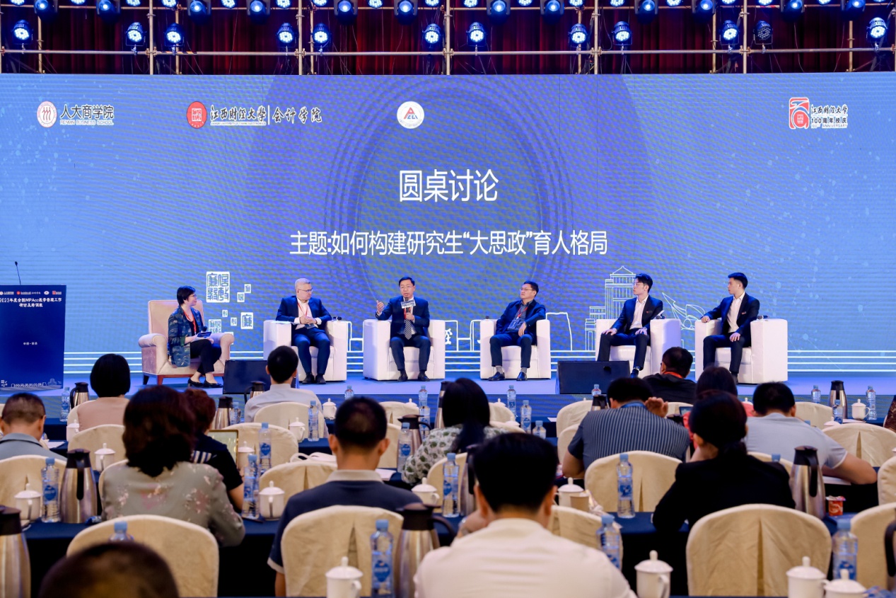 最后,秦荣生教授、王跃堂教授、卢锐教授及江西财经大学会计学院2020级MPAcc学员叶坤、2022级MPAcc学员熊嘉龙围绕“如何构建研究生大思政育人格局”主题进行讨论。