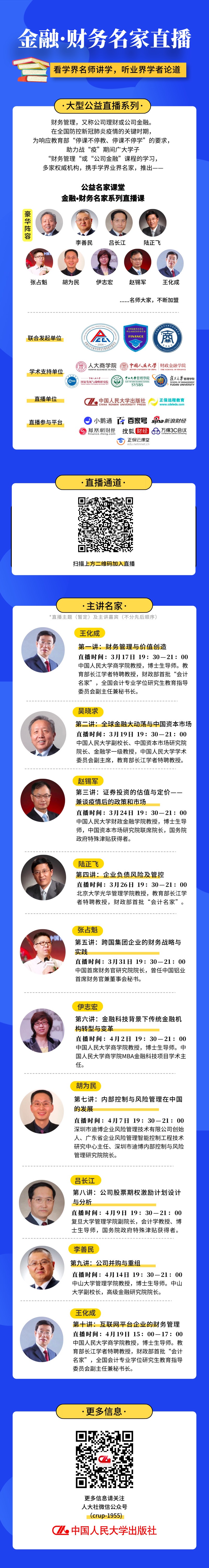 2020年3月17日-4月19日,由全国会计专业学位研究生教育指导委员会、全国金融专业学位研究生教育指导委员会、教育部本科工商管理教学指导委员会发起并组织的金融·财务名家公益直播圆满落幕。