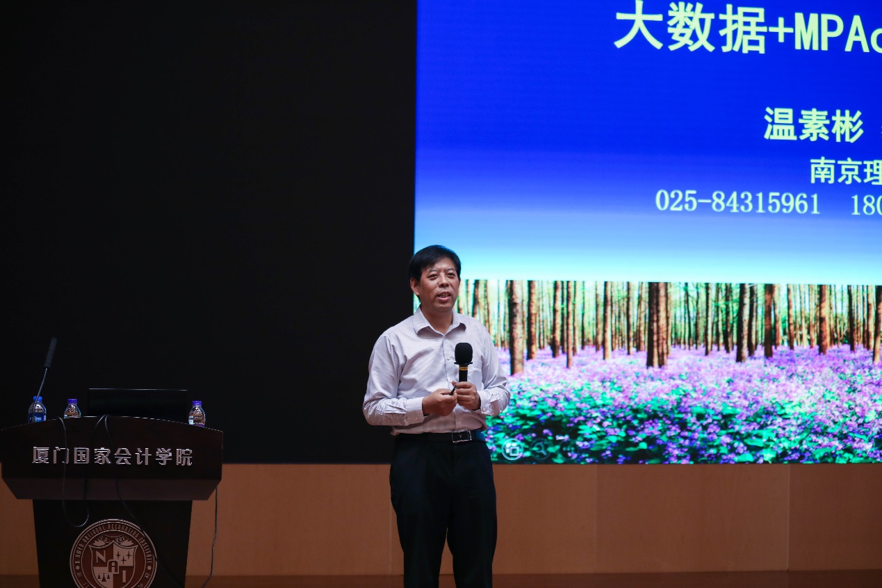 温素彬教授围绕“大数据+MPAcc人才培养体系构建”的主题展开演讲。温教授以人工智能“小冰”和“九歌”为例,探讨大数据和新技术对会计的影响,分析会计所面临的挑战,分享南京理工大学MPAcc项目的教学方式及经验特色,提出会计转型已成必然的启示。