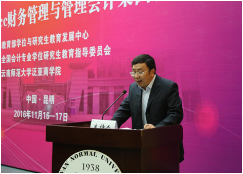 2016年11月16至17日,由教育部学位与研究生教育发展中心、全国会计专业学位研究生教育指导委员会主办(以下简称会计教指委),云南师范大学泛亚商学院承办的中国专业学位教学案例中心第18期案例教学培训暨2016年全国MPAcc财务管理与管理会计案例教学研讨会在云南师范大学呈贡校区中国西南对外开放与边疆研究中心报告厅举行。云南师范大学校长蒋永文教授,泛亚商学院院长杨永生教授,长江商学院张维宁教授,全国MPAcc优秀教学案例获奖者、北京航空航天大学周宁教授,全国MPAcc优秀教学案例获奖者、东北财经大学姜英兵教授,全国MPAcc优秀教学案例获奖者、上海国家会计学院郑德渊教授,会计教指委委员谭劲松教授,会计教指委副主任委员兼秘书长王化成教授,研究生部和泛亚商学院负责人以及全国87所兄弟院校的200余名教师代表参加了本次研讨会。