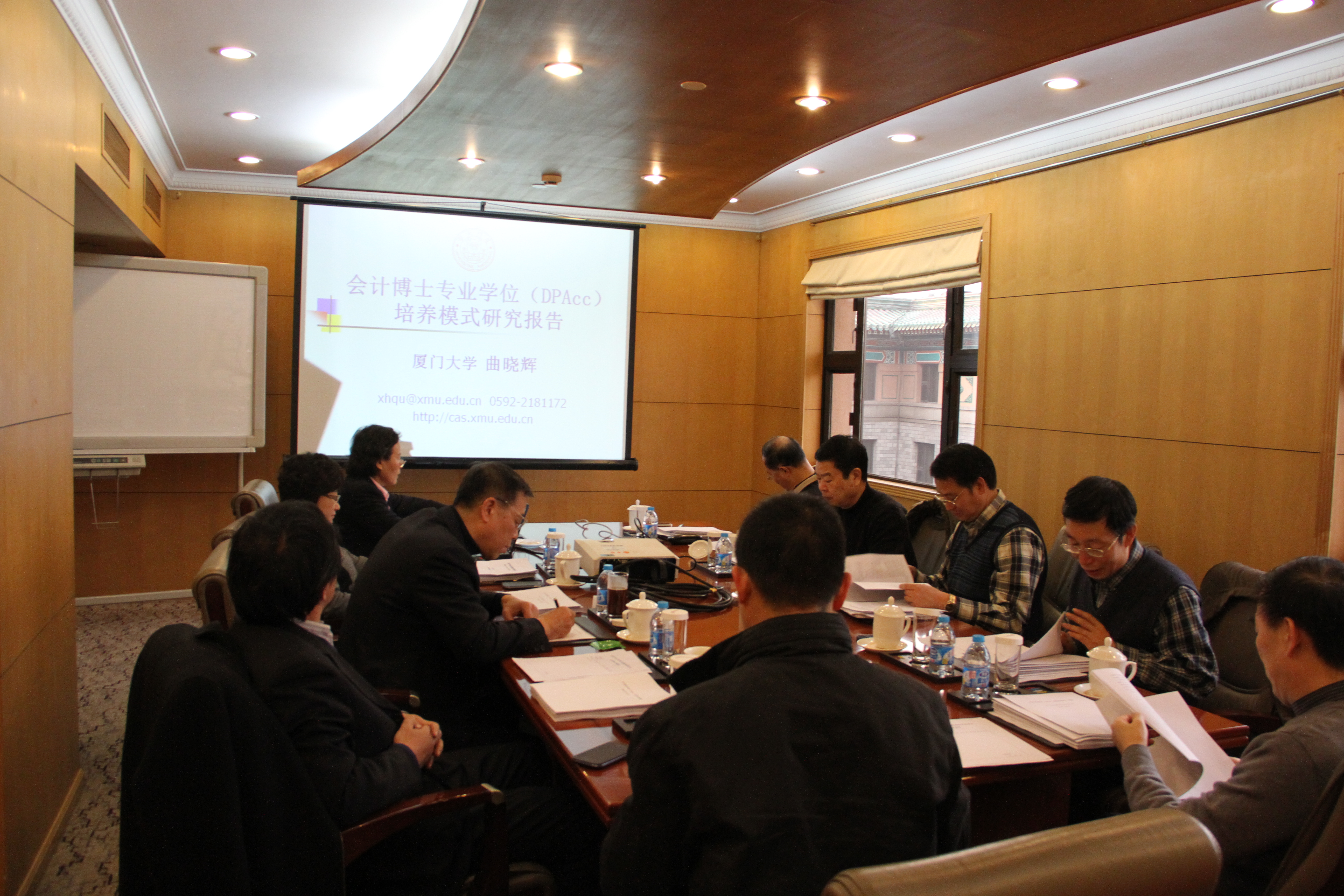2013年12月24日,全国会计专业学位研究生教育指导委员会(以下简称会计教指委)秘书处在北京组织专家召开研究课题评审工作会议。国务院学位委员会办公室专业学位处唐继卫处长出席会议。会计教指委委员、中央财经大学孟焰教授担任评审工作专家组组长,专家组成员包括会计教指委副主任委员、中国人民大学荆新教授,会计教指委委员、东北财经大学刘永泽教授,会计教指委委员、厦门大学曲晓辉教授,会计教指委委员、南开大学刘志远教授,会计教指委委员、西安交通大学张俊瑞教授,会计教指委委员、西南财经大学彭韶兵教授,会计教指委秘书处秘书长、中国人民大学王化成教授。中国人民大学宋建波教授、北京国家会计学院郑洪涛教授、北京国家会计学院聂兴凯老师,以及秘书处工作人员也参加了本次会议。