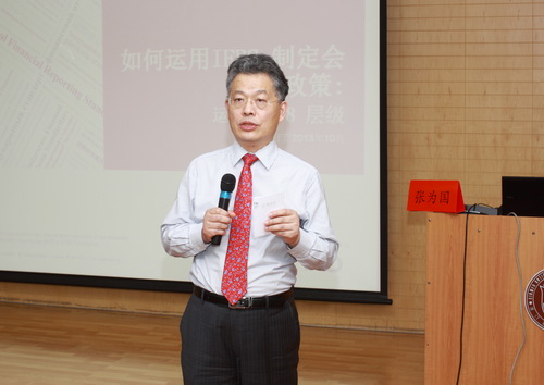 为时两天的研讨会旨在改变会计专业教师在教学中“重借贷做帐技术,轻职业判断与估计”的做法,宣传基于概念框架的国际财务报告准则教学法,以着重培养学生的职业判断能力,增进学生对知识的理解和运用。主讲人以固定资产,金融资产、负债和IAS 8号层级为例,介绍了国际会计准则理事会教育委员会为此专门开发的案例资料,讲解了如何运用这些资料开展教学。在研讨会中,主讲人列举了很多生动有趣的例子,引领大家使用概念框架进行判断和估计;与会的老师们也对此表示出极大的兴趣,与主讲人进行了良好的互动,并就如何获得教学资料、如何自行开发案例等问题与主讲人展开了交流。最后,张为国先生还针对与会者的提问,介绍了国际财务报告准则修订的最新动向,分享了从事多年准则制订工作的感想,会场气氛非常热烈。