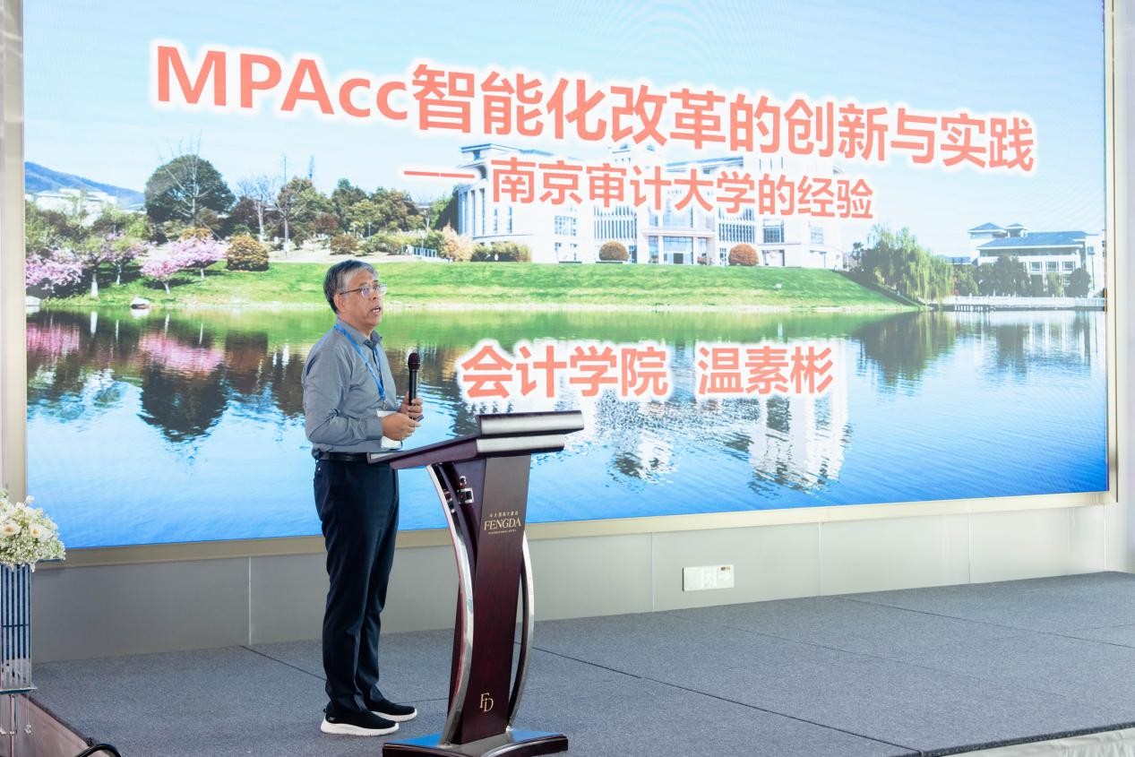 温素彬教授就“MPAcc智能化改革的创新与实践”分享南审经验。他指出教育必须要有超前性。南审的学科定位是依托审计聚焦财务监督与治理。在此基础上,南审提出了三大发展策略,分别是审计+财会监督+风险管理+组织治理的特色发展;数智赋能智能会计的创新发展;“十五五”末实现的跨越发展。