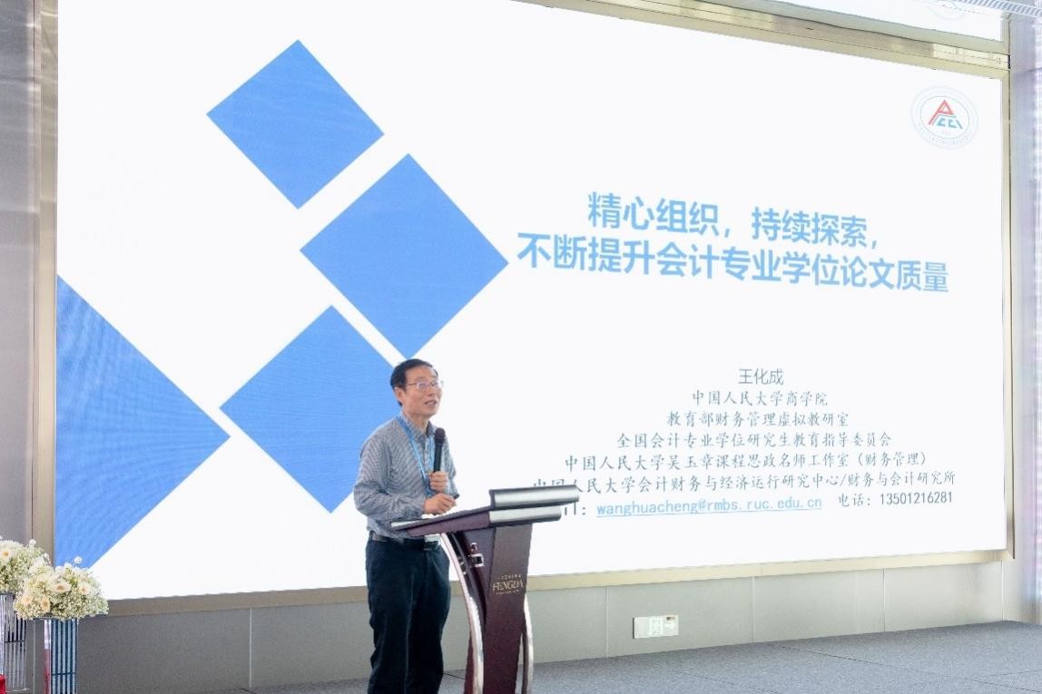 王化成教授以“精心组织,持续探索,不断提升会计专业学位论文质量”为主题发表演讲。他指出,会计专硕论文质量提升是人才培养的关键环节,重点参考会计专硕学位论文评价要素,从选题、内容、成果等维度细分指标,为论文质量评价提供了清晰指引。选题强调源于会计财务实践的有价值问题,内容注重理论与文献综述、研究方法的科学性,成果突出结论可靠性与创新性。构建论文与实践成果匿名评审新机制成为重要议题。同时,为推动产学研深度融合,会议提出充分发挥校外导师作用,严格遴选制度、建立激励与培训机制,深化校企合作,促进校内、外导师定期交流,参与研究生培养指导。
