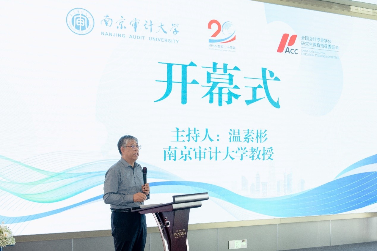 为深入探讨中国现代化进程中会计专业学位研究生教育改革的新路径、新方法,进一步推动江苏省内高校会计专业学位研究生教育的发展与创新,由全国会计专业学位研究生教育指导委员会(简称会计教指委)指导,江苏省会计专业学位研究生教育联合会主办,南京审计大学会计学院承办的第六届“江苏省高校MPAcc教育发展高层论坛”暨“中国现代化与会计专业学位研究生教育改革”研讨会于2025年5月10日成功举办。会计教指委副主任委员王化成教授,会计教指委委员、江苏省会计专业学位研究生教育联合会理事长王跃堂教授,江苏省会计专业学位研究生教育联合会秘书长林树教授,北京经邦大数据科技有限公司陈绪龙总裁,跃客科技付伟总裁,数智教育研究院宋国荣总裁,南京审计大学副校长姜海教授,南京审计大学会计学院院长温素彬教授等专家出席本次会议,共同就新时代下会计教育面临的机遇与挑战展开深入交流与研讨。开幕式由温素彬教授主持。