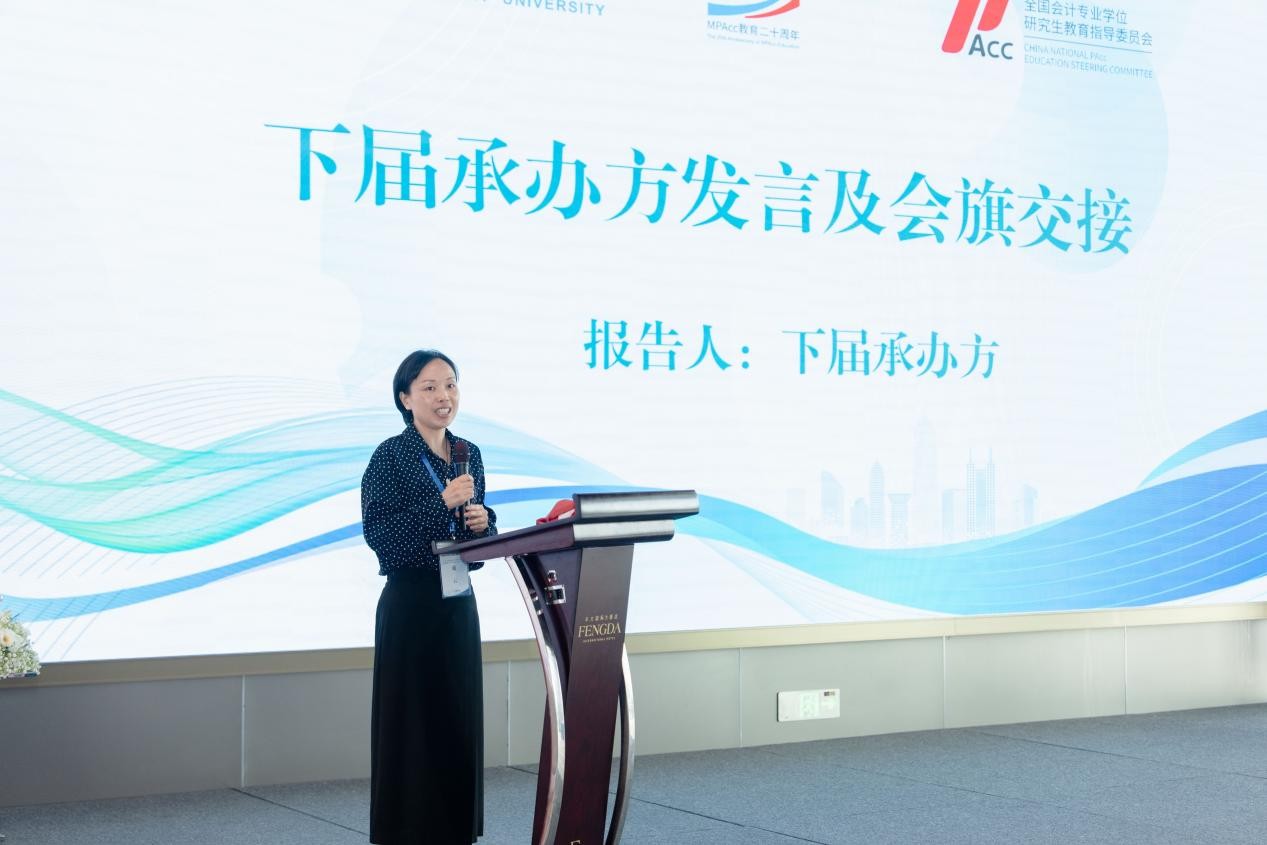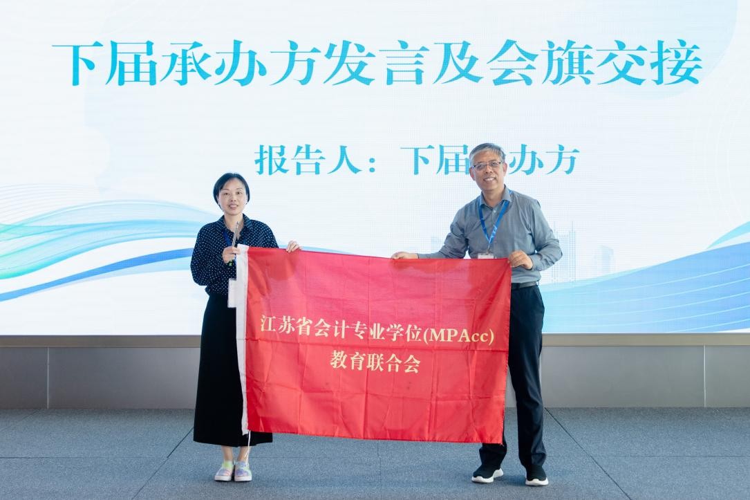 闭幕式举办了下届承办方发言及会旗交接仪式。会旗由本次承办方南京审计大学会计学院向下届承办方南通大学商学院代表交接。