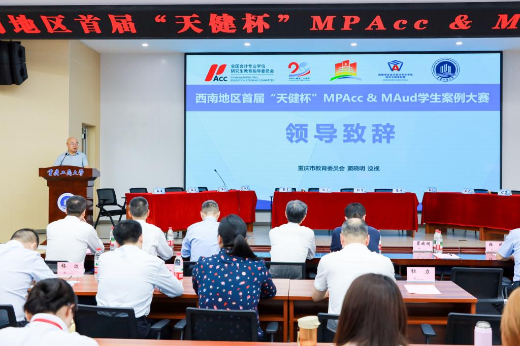 4月20日,西南地区首届“天健杯”MPAcc & MAud学生案例大赛决赛在重庆工商大学南岸校区落下帷幕。会计教指委秘书长支晓强、重庆市教委巡视员窦晓明、重庆工商大学原校长孙芳城、重庆工商大学副校长张波、云南财经大学副校长余怒涛、贵州财经大学副校长杜剑、西南财经大学会计学院院长唐雪松、重庆工商大学会计学院院长钟廷勇、重庆市财政局会计处朱晓东、四川省财政厅会计处副处长徐旭、天健会计师事务所重庆分所高级合伙人、副总经理于波成等出席决赛现场。重庆工商大学研究生院院长杜力主持开幕式。