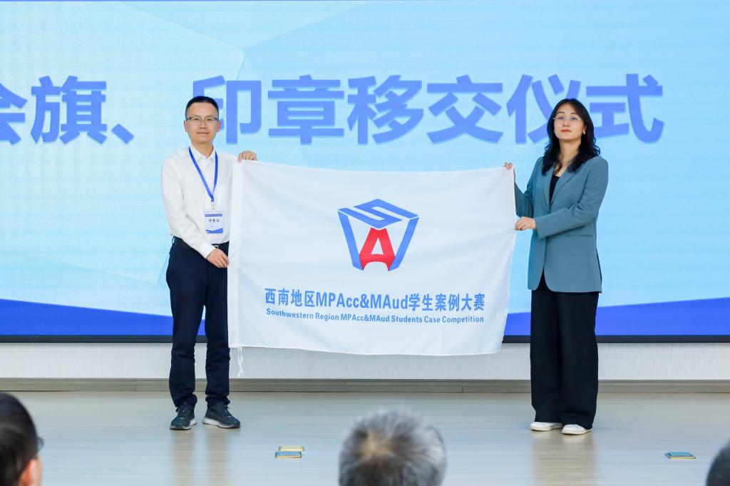 闭幕式上,西南财经大学会计学院院长唐雪松代表联盟完成会旗交接。