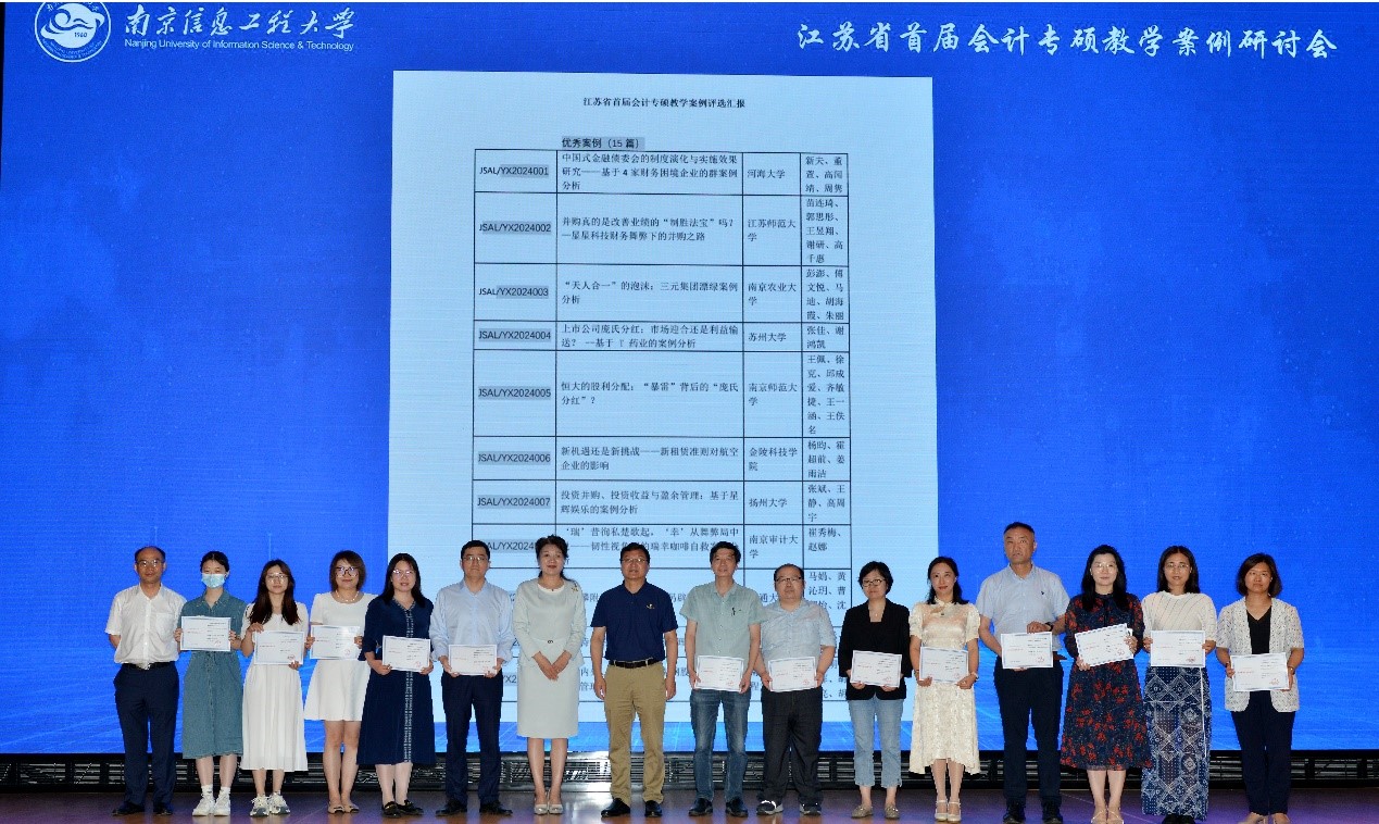 6月30日,江苏省首届会计专硕教学案例研讨会在南京信息工程大学顺利举行。全国会计专业学位研究生教育指导委员会(简称会计教指委)秘书长、中国人民大学党委常委、副校长支晓强教授,会计教指委委员、教育部长江学者特聘教授、上海交通大学夏立军教授,江苏省人民医院总会计师贲慧教授、南京财经大学会计学院院长沈永建教授等专家出席会议并作主题报告,报告围绕案例研究、案例开发与写作、案例教学、医院绩效管理实践案例、MPAcc人才培养等主题展开。