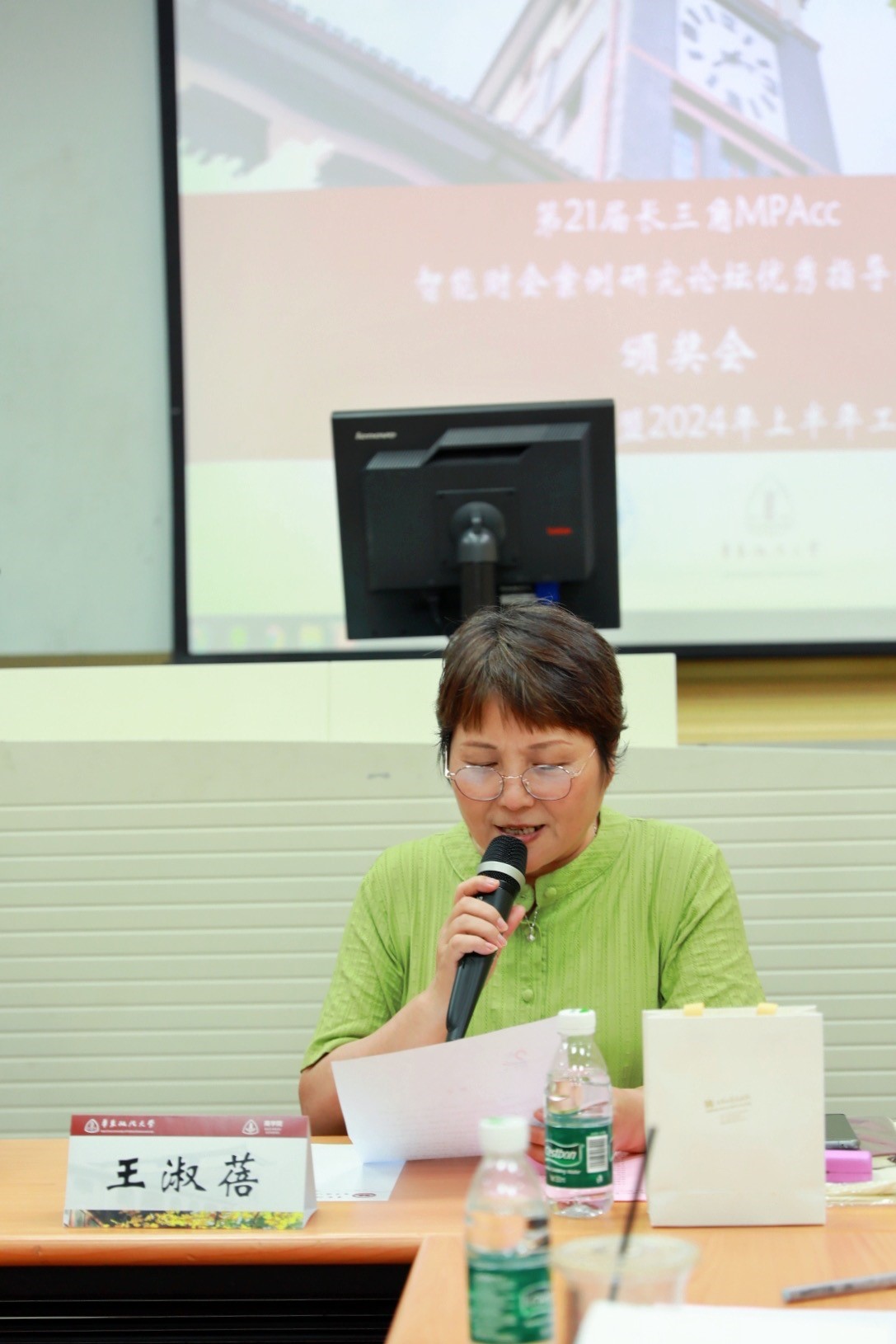 6月14日周五下午,第21届长三角MPAcc智能财会案例研究论坛优秀指导教师颁奖会暨华东MPAcc教育联盟2024年上半年工作会议在华东政法大学长宁校区顺利举行。来自江苏、浙江、安徽、山东和上海等地十八所高校近三十位专家学者现场与会。本次会议由全国会计专业学位研究生教育指导委员会(以下简称会计教指委)指导,华东MPAcc教育联盟秘书处主办,华东政法大学商学院MPAcc中心承办。
