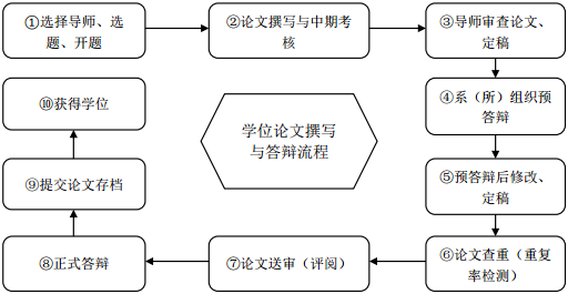 9. 提交论文存档:通过答辩的学位论文,由学生按照规定时间提交培养单位研究生教务管理部门存档。需要适度修改的论文在修改后提交存档。论文存档后将提交培养单位学院、学校两级学位委员会会议。